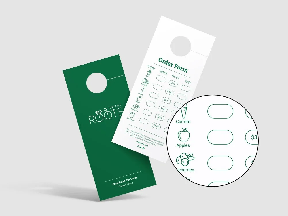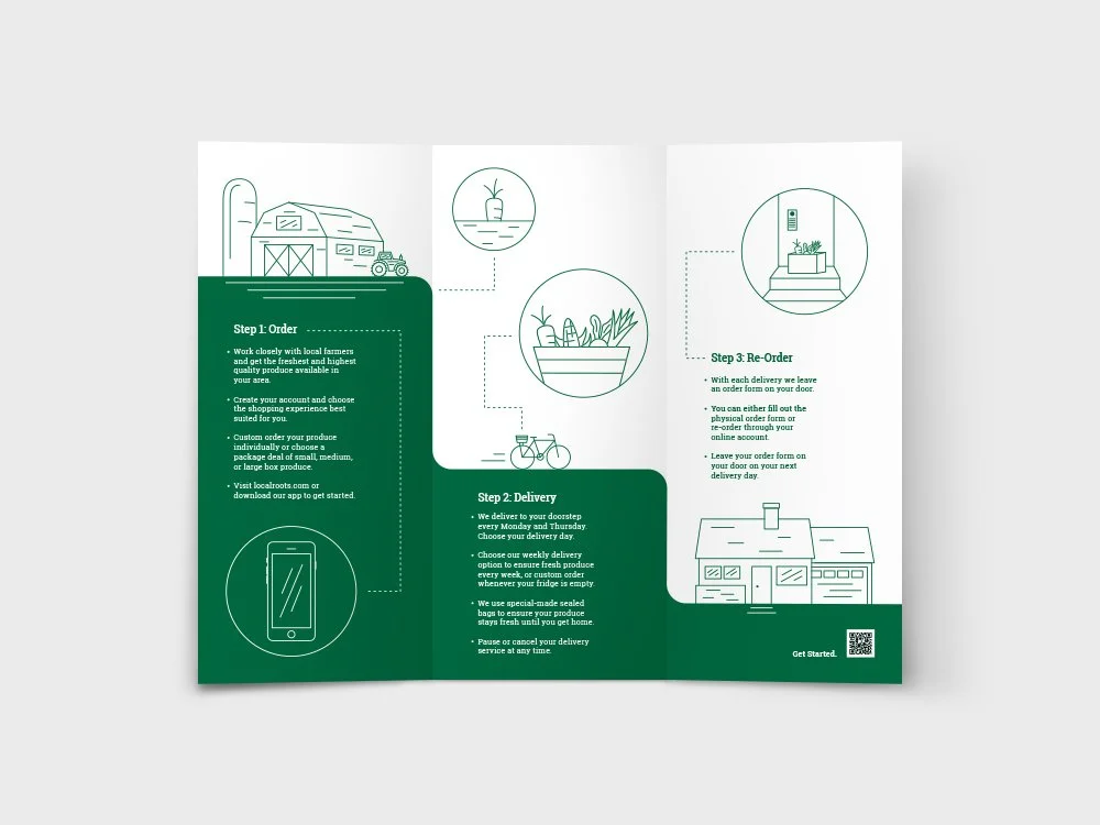 Local Roots is a conceptual food delivery service. The idea is to deliver fresh produce to the customers doorstep without the need to drive to the grocery store or local farmer’s market. I created all the branding and advertising pieces including the logo, brochure, order form, and poster.